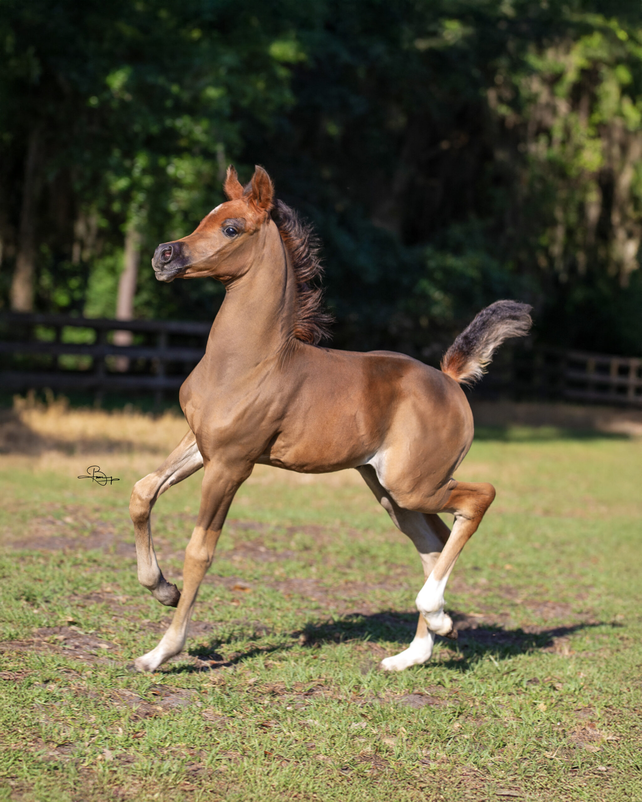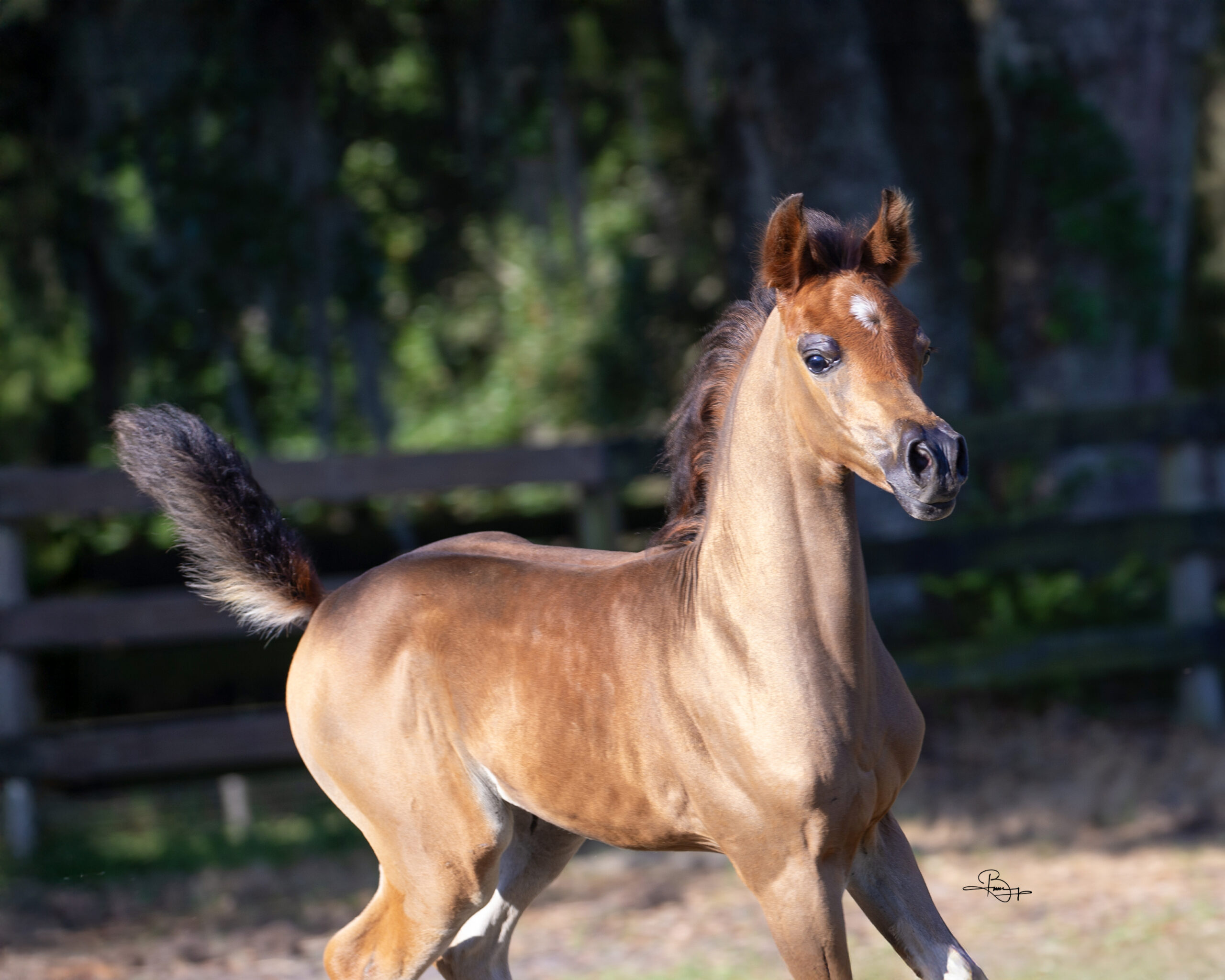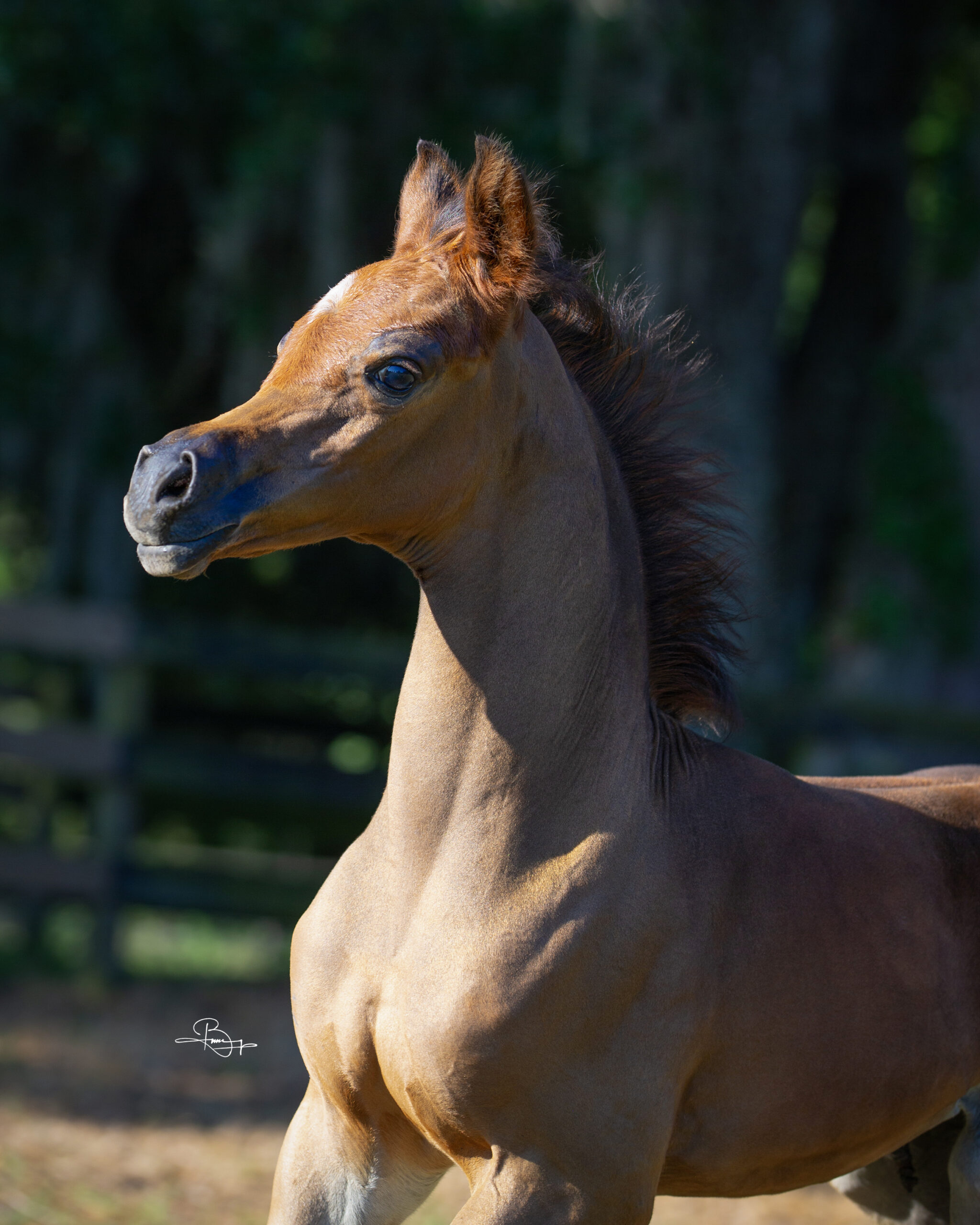 NORTHSTARS LUCIANA is one of the most promising daughters of the exciting young sire, Wall Street B. In just his first foal crop, which arrived in 2025, Wall Street is proving himself with the extreme beauty and inherent quality of his debut offspring. With her large eyes, breathtaking type, wonderful conformation, and sweet personality, Northstars Luciana is a prime example of the quality Northstar Arabians strives to achieve with our breeding program. Wall Street B is sired by World Gold Champion Stallion and leading sire, QR Marc, by World Gold Champion Stallion Marwan Al Shaqab, by World Gold and Platinum Champion Stallion Gazal Al Shaqab. His sire line is the most influential in the world in terms of national and international champions, as well as generational champion-producers.
