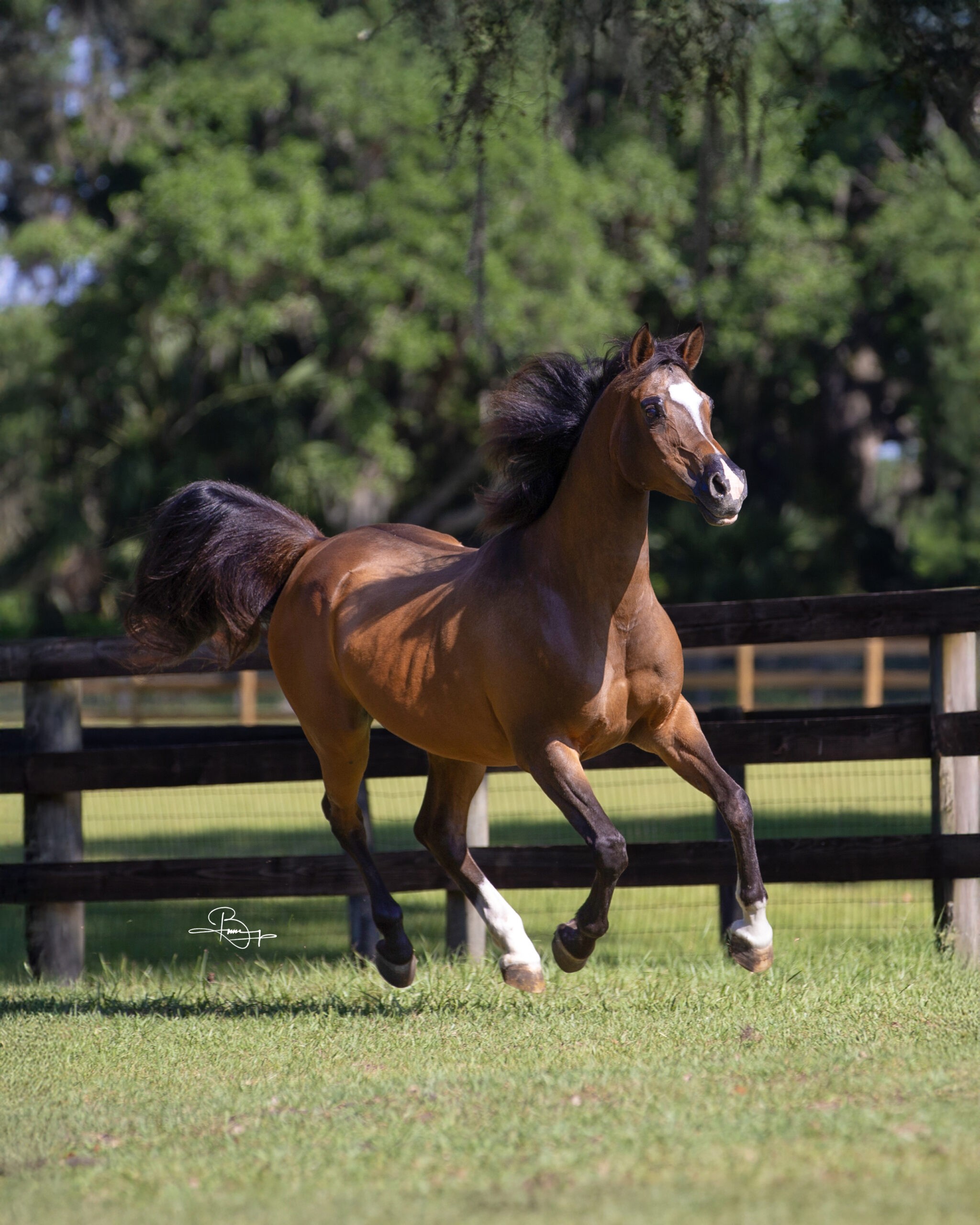 SB Miss Independence is a daughter of Sir Fames HBV, a stallion that was produced by Haras Boa Vista, a leading breeder in Brazil. His sire, FFames, also bred in Brazil, is a son of United States National Champion Stallion and leading sire Fame VF, himself a son of the great Bey Shah. Fame VF is famous for his many halter and performance national champion sons and daughters. Among his most noteworthy daughters was Little Liza Fame, national champion in halter and western pleasure, as well as the dam of U. S. National Champion and multi-World Gold Champion and leading sire, Marwan Al Shaqab.